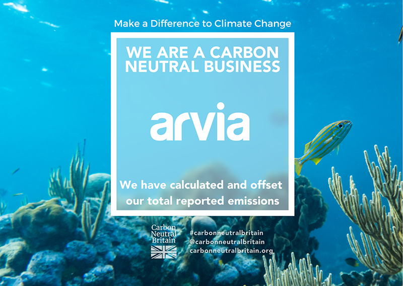 After verified measurement and internal emissions reductions, an independent assessment resulted in Arvia offsetting 167.67 tonnes of carbon emissions through a global renewable energy portfolio.